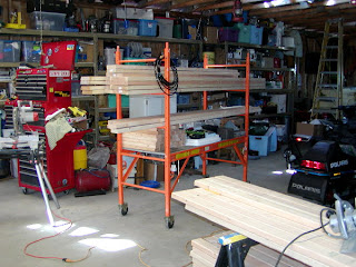 After breakfast it was a trip to the lumber yard for a trailer load of wood to start the observatory. Back at the shop I cut everything out for the floor following the plans from Polydome. Assembly will be tomorrow.